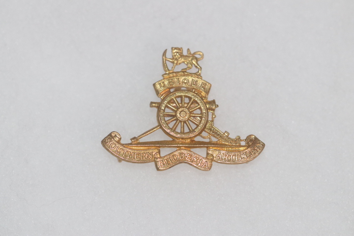 ORIGINAL RHODESIAN ARTILLERY ARMY CAP BADGE BRASS