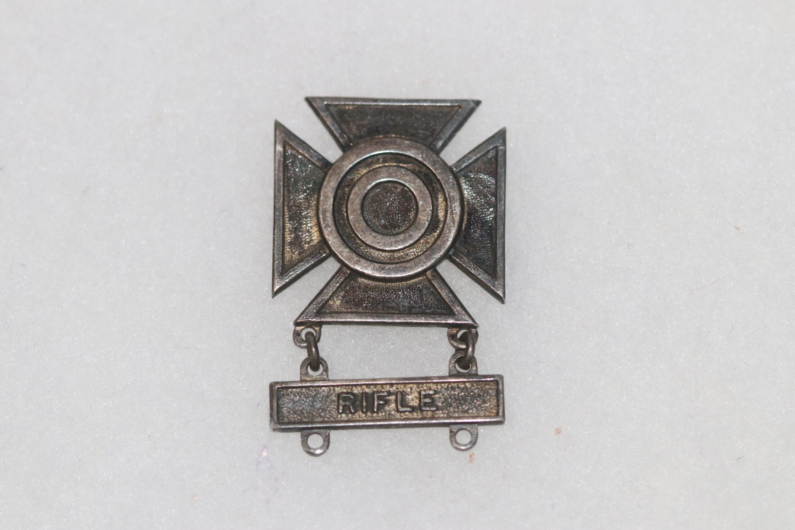 ORIGINAL US WW2 SHARPSHOOTER QUALIFICATION BADGE WITH RIFLE BAR STERLING SILVER BADGE #1