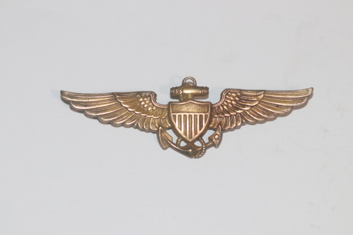 WW2 US NAVY USN STERLING SILVER GOLD PLATED PILOT WING BADGE
