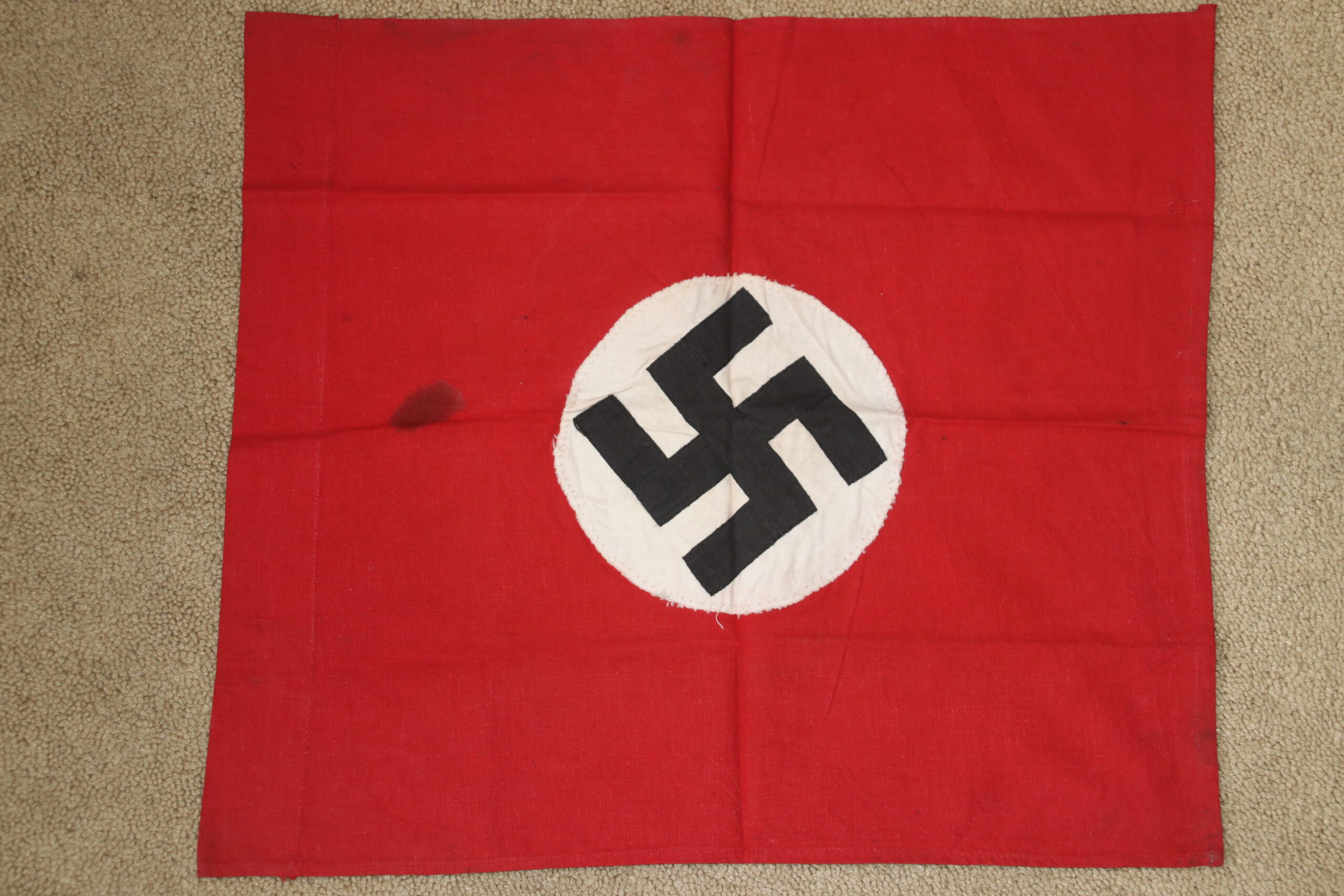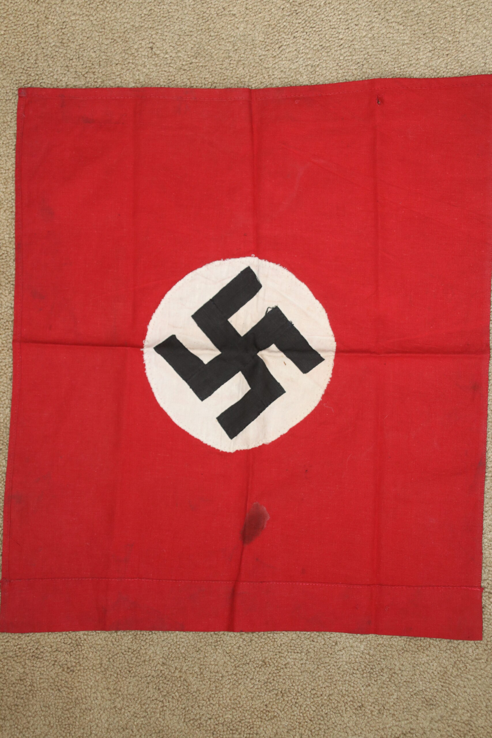 GOOD ORIGINAL WW2 THIRD REICH GERMAN FLAG #5 STITCHED SWASTIKA TO CENTRE ON BOTH SIDES.