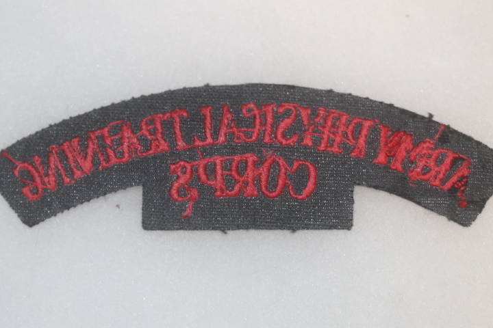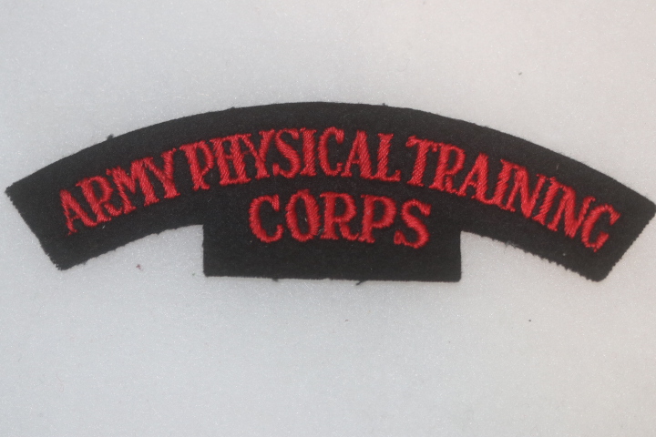 ORIGINAL BRITISH ARMY PHYSICAL TRAINING CORPS EMBROIDERED CLOTH SHOULDER TITLE #1