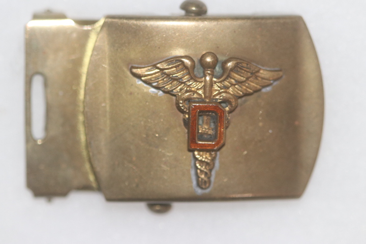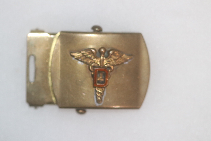 ORIGINAL US ARMY WW2 BELT BUCKLE WITH DENTIST MEDICAL BADGE
