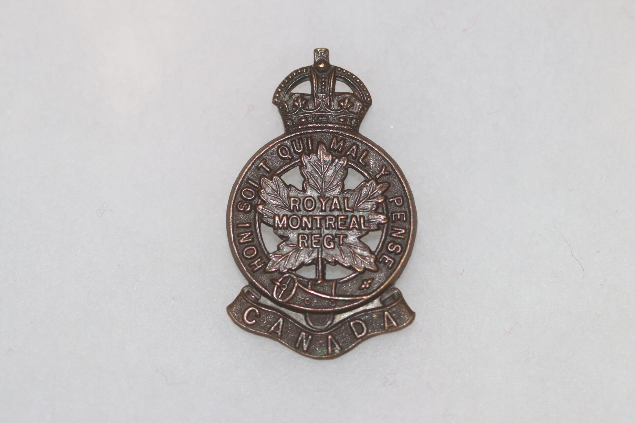 ORIGINAL WW2 CANADIAN ARMY ROYAL MONTREAL REGIMENT CANADA CAP BADGE #3