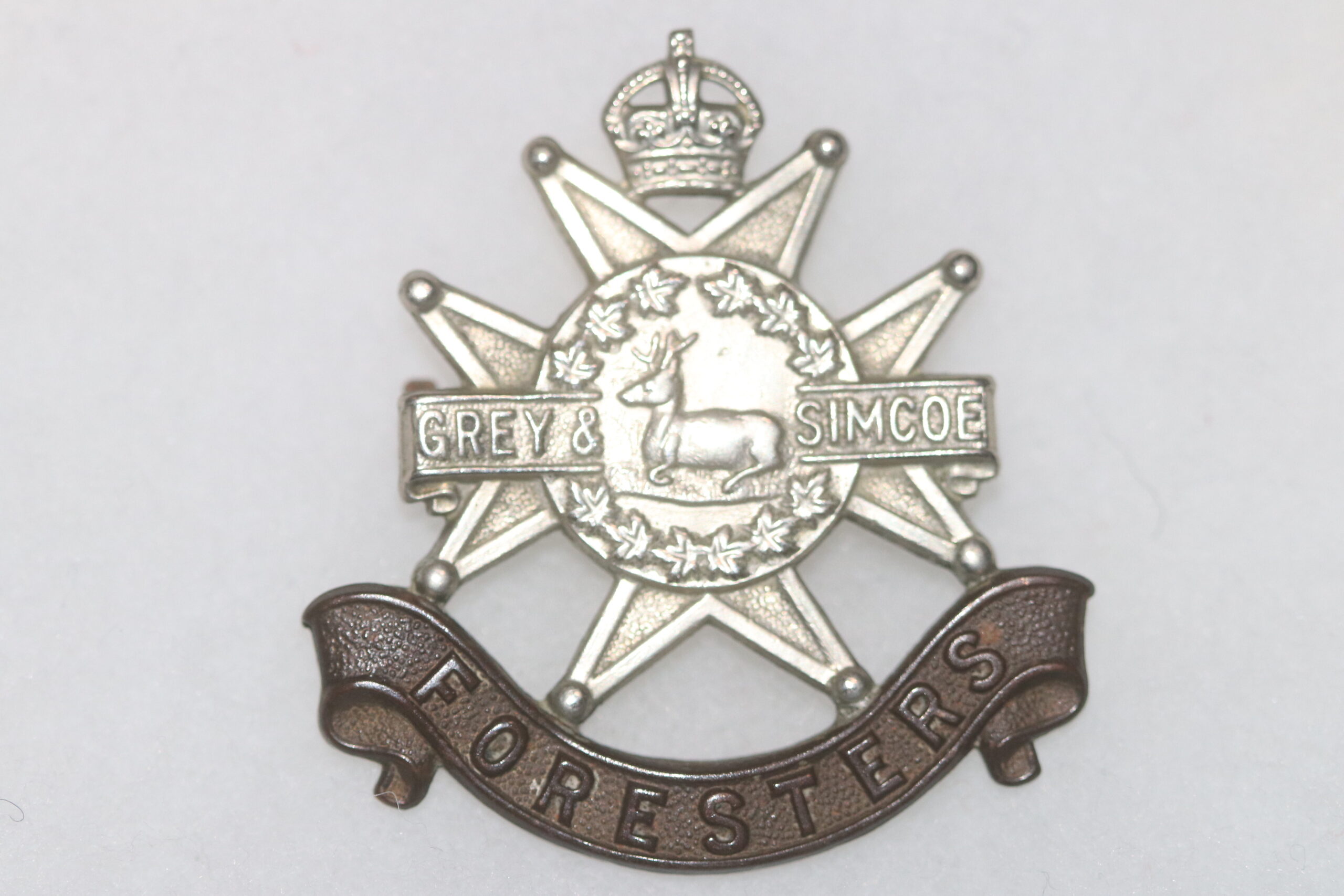 ORIGINAL WW2 CANADIAN CANADA ARMY CAP BADGE FORESTERS GREY & SIMCOE REGIMENT