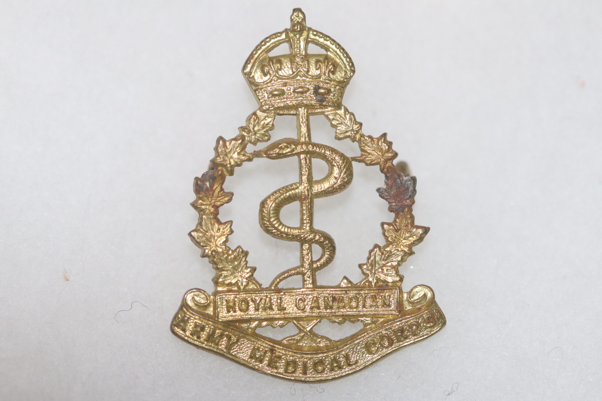 ORIGINAL WW2 CANADIAN CANADA CAP BADGE THE ROYAL CANADIAN ARMY MEDICAL CORPS
