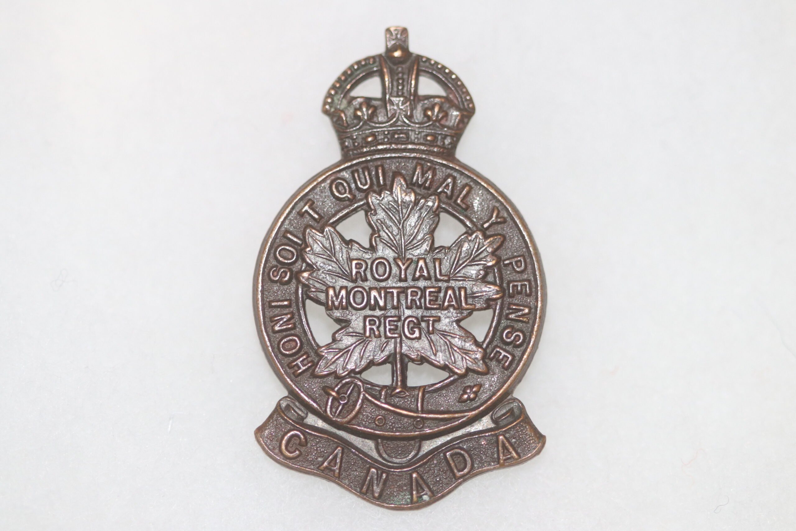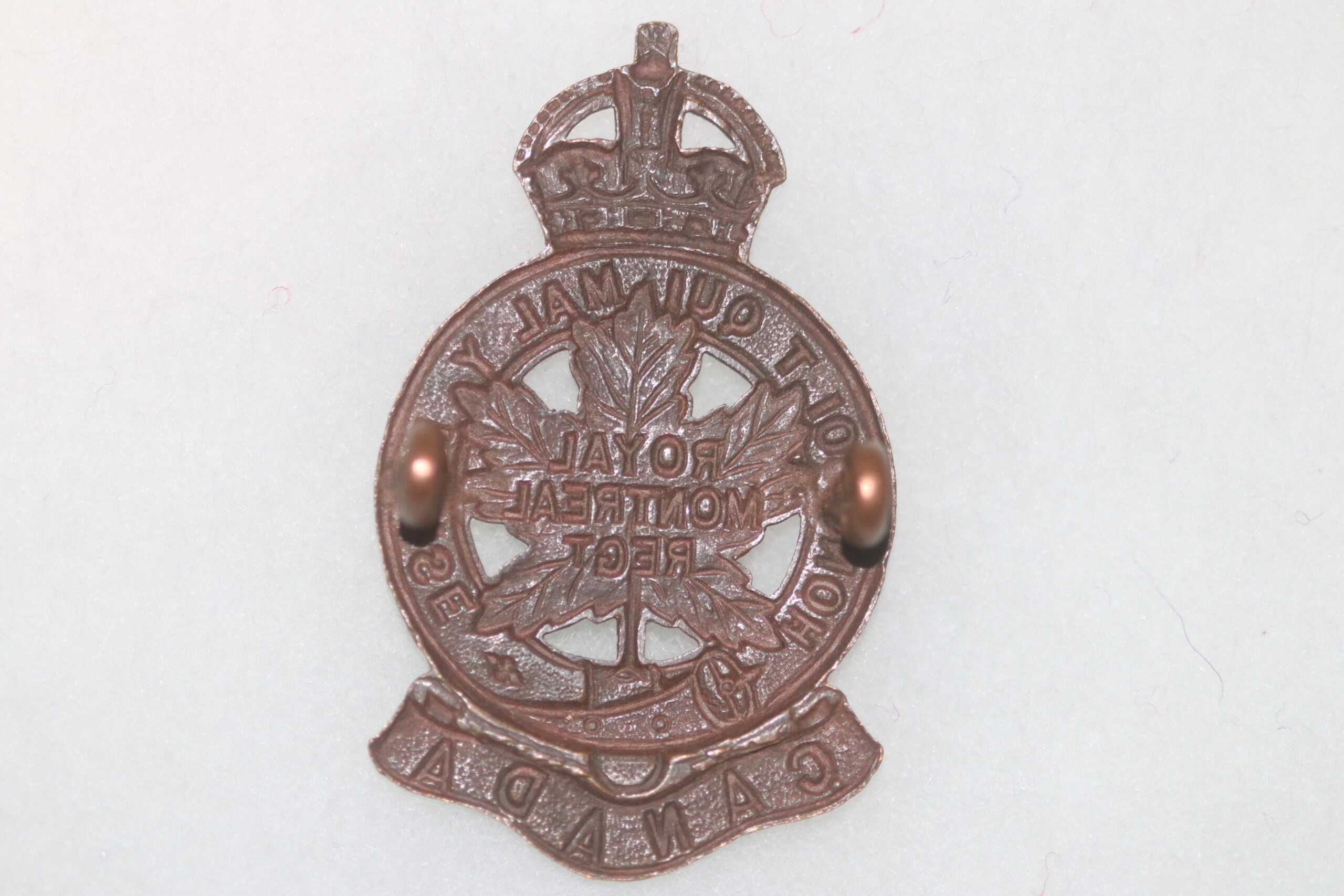 ORIGINAL WW2 CANADIAN ROYAL MONTREAL REGIMENT CANADA CAP BADGE #3