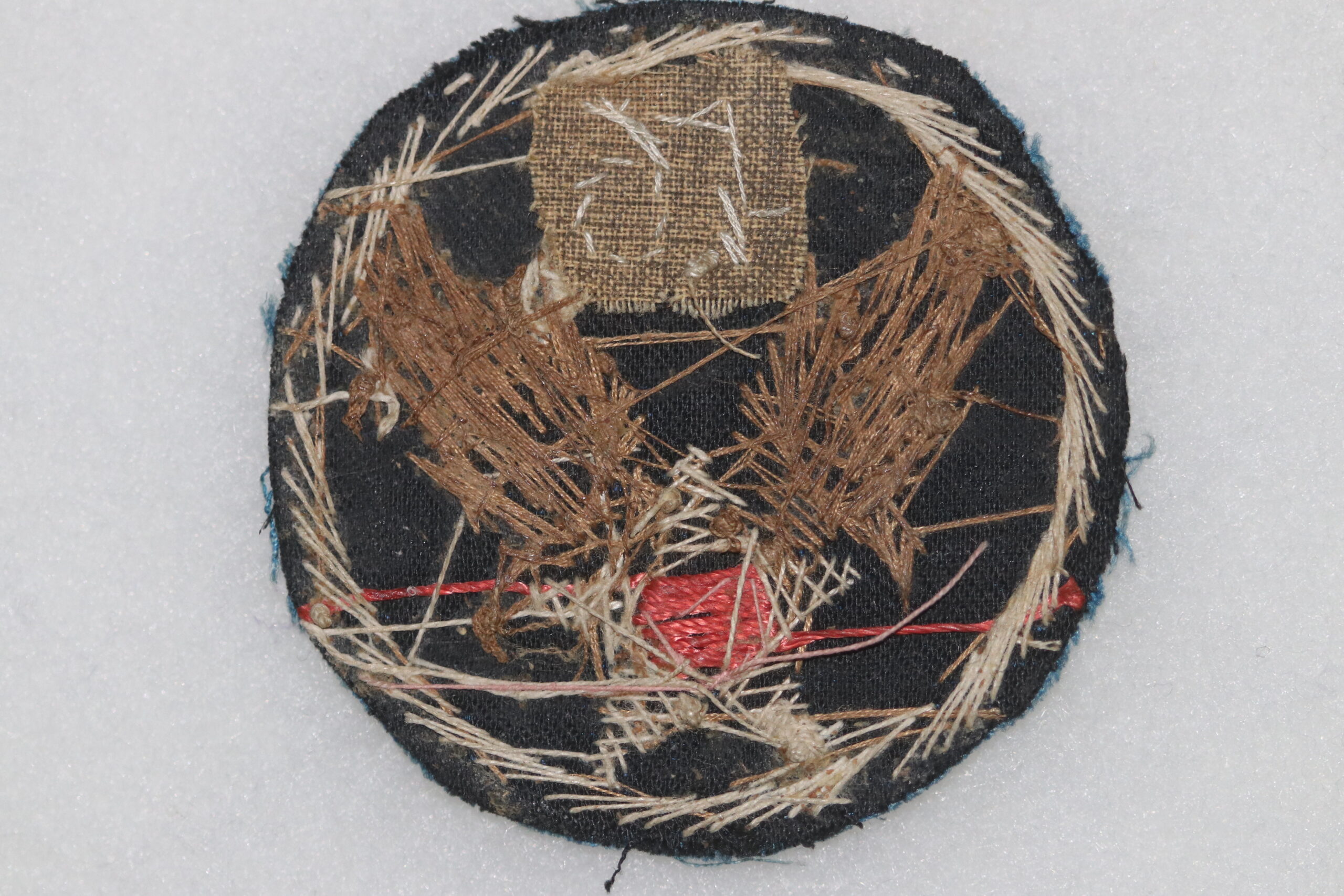 EMBROIDERED ON TO BLUE SILK BASE