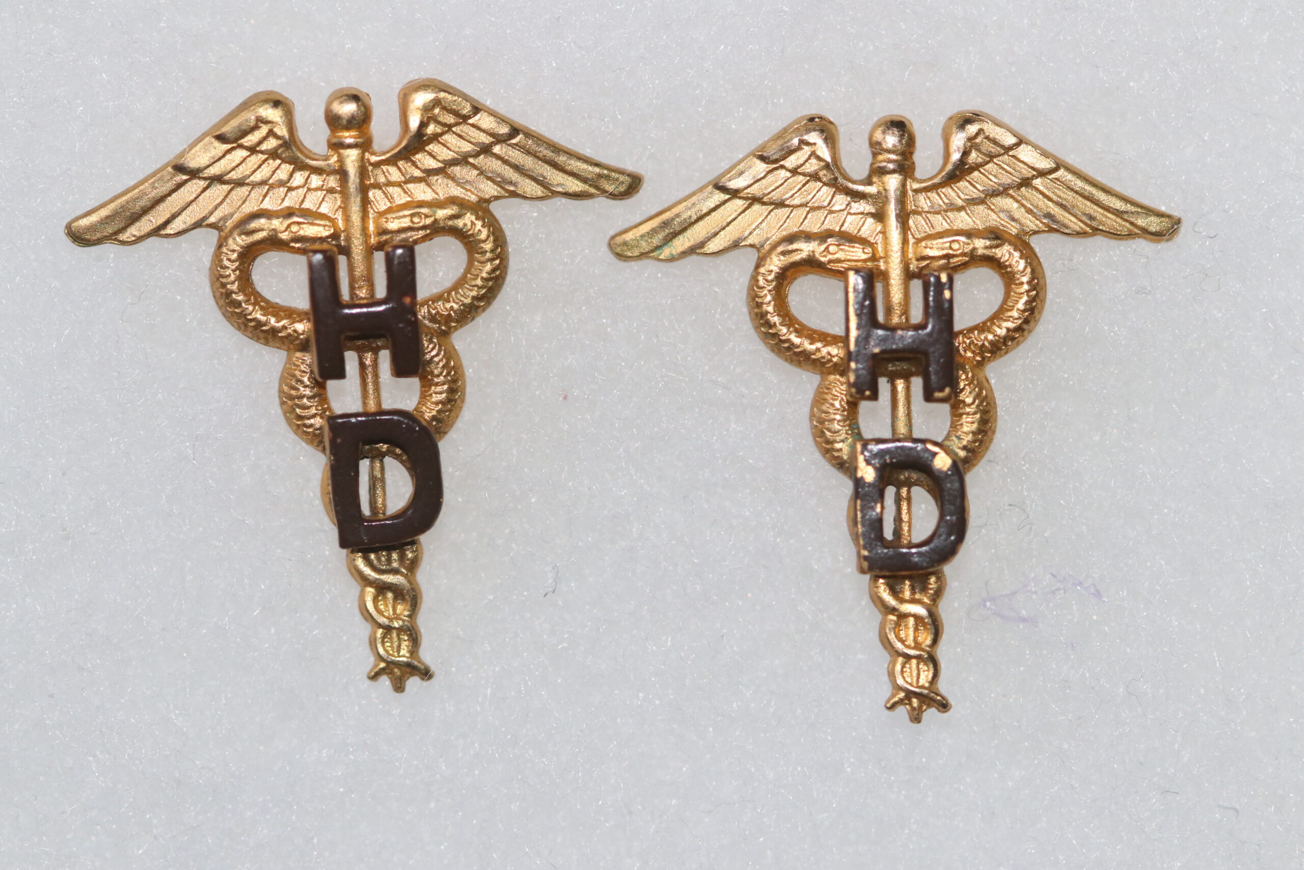 ORIGINAL WW2 US ARMY NURSE CORPS HOSPITAL DIETITIAN ORIGINAL ‘HD’ COLLAR BADGES PAIR #1