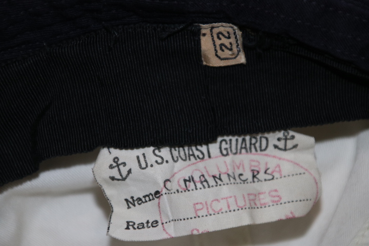 ORIGINAL WW2 US NAVY COAST GUARD BLUE BRIMMED HAT WITH REMOVABLE WHITE COVER SIZE 22