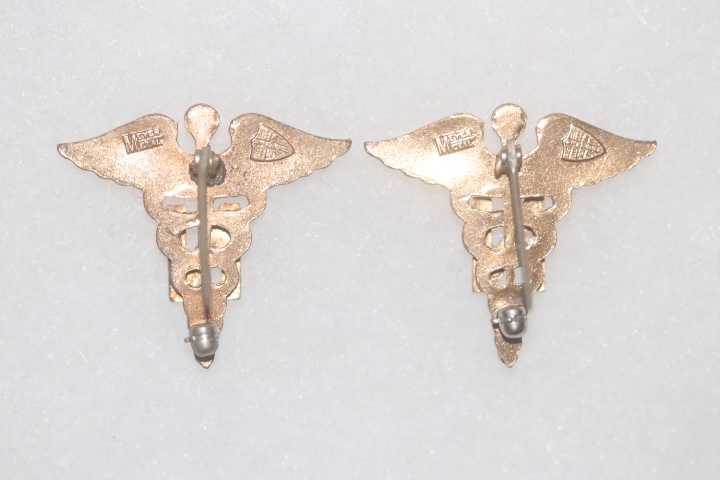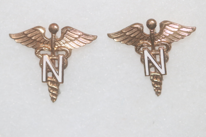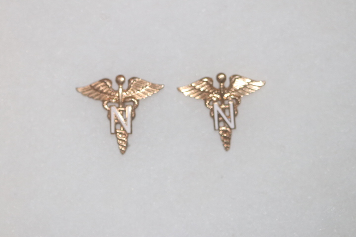 ORIGINAL WW2 US NURSE OFFICER’S COLLAR INSIGNIA WITH EARLY WHITE ‘N’ MEYER