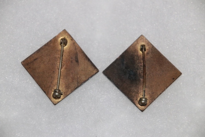 SUPERB PAIR OF ORIGINAL WW2 US 4th INFANTRY REGIMENT DISTINCTIVE CRESTS